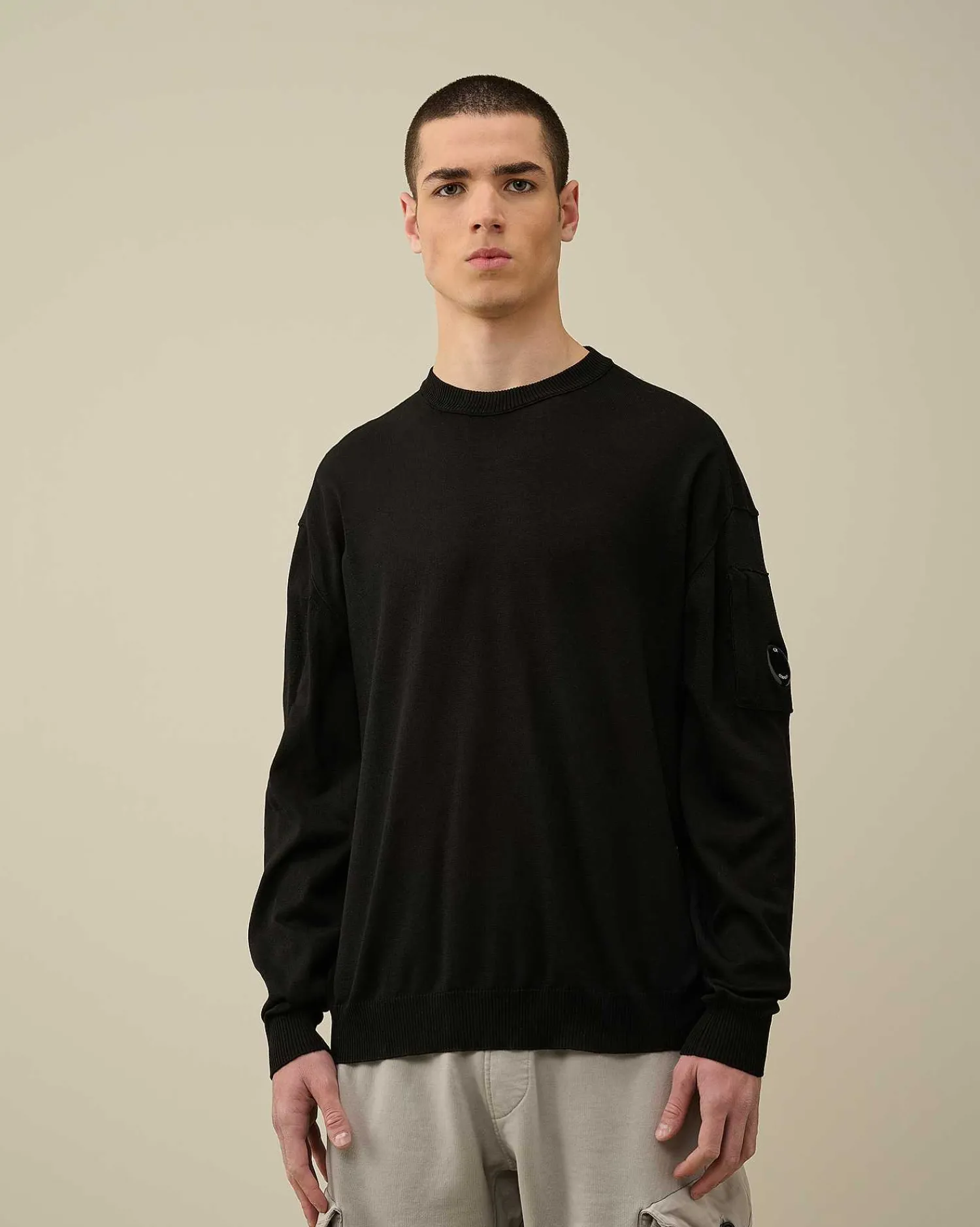 Ce Pull Présente Un Col Ras-Du-Cou, Des Poignets Et Un Ourlet Côtelés, Ainsi Qu’Une Manche Gauche Ornée Du Détail En Forme De Verre De Lunette C.P. Company. Il Est Confectionné Dans Notre Coton Haut De Gamme Filo Di Scozia, Jauge 14. Coupe Droite.