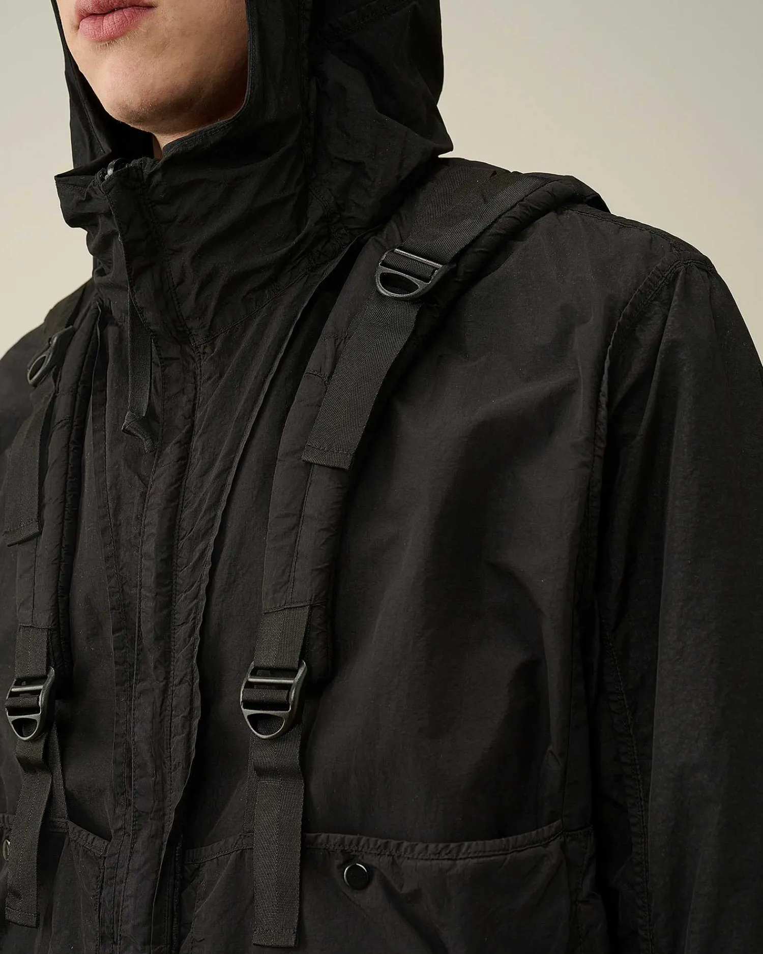 Veste Réversible Avec Col Montant, Capuche Réglable, Fermeture Zippée Sur Toute La Longueur Et Poignets Réglables. Le Détail En Forme De Verre De Lunette C.P. Company S’Invite Sur La Poche De La Manche. La Veste Présente Des Poches Sécurisées Avec Le Détail En Forme De Verre De Lunette Sur La Manche Gauche Et Des Bretelles Réglables Créant Un Effet De Superposition. Le Flatt Nylon Est Un Nylon Émerisé, Également Dit « Sablé ». Le Tissu Ainsi Produit Est Plus Doux Et Présente Un Fini Plus Mat, Semblable À Un Tissu Qui A Été Porté Et Lavé De Nombreuses Fois. Modèle Teint En Pièce Pour Plus De Profondeur Et D’Intensité Dans Les Couleurs. Coupe Droite.