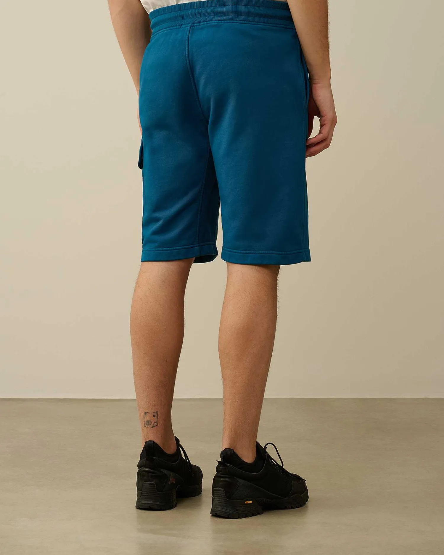 Short Longueur Genoux Avec Taille Réglable À Cordons De Serrage Et Deux Poches En Biais Pour Les Mains. Ce Short Teint Par Réserve Présente Une Unique Poche Cargo Ornée Du Détail En Forme De Verre De Lunette C.P. Company. Modèle Confectionné Dans Un Molleton De Coton Basique Alliant Confort Et Respirabilité, Puis Teint Par Réserve Pour Un Fini Ton Sur Ton Contrasté. Coupe Droite.