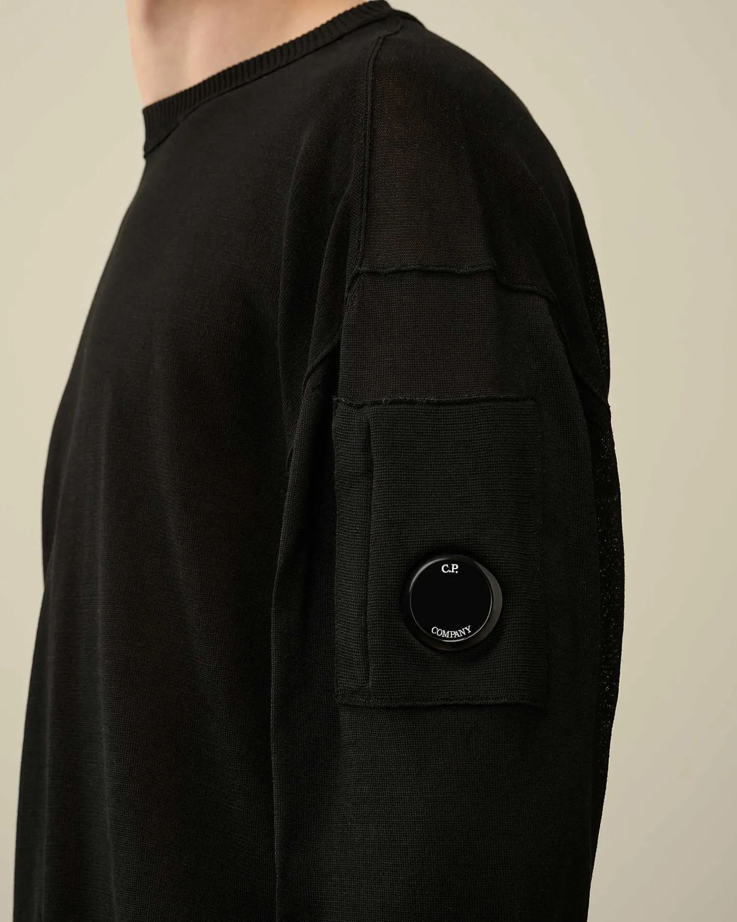 Ce Pull Présente Un Col Ras-Du-Cou, Des Poignets Et Un Ourlet Côtelés, Ainsi Qu’Une Manche Gauche Ornée Du Détail En Forme De Verre De Lunette C.P. Company. Il Est Confectionné Dans Notre Coton Haut De Gamme Filo Di Scozia, Jauge 14. Coupe Droite.