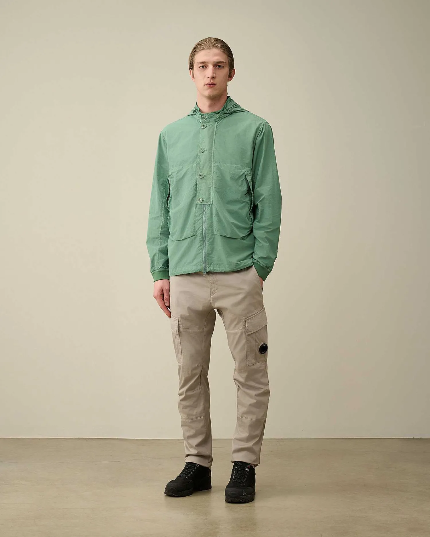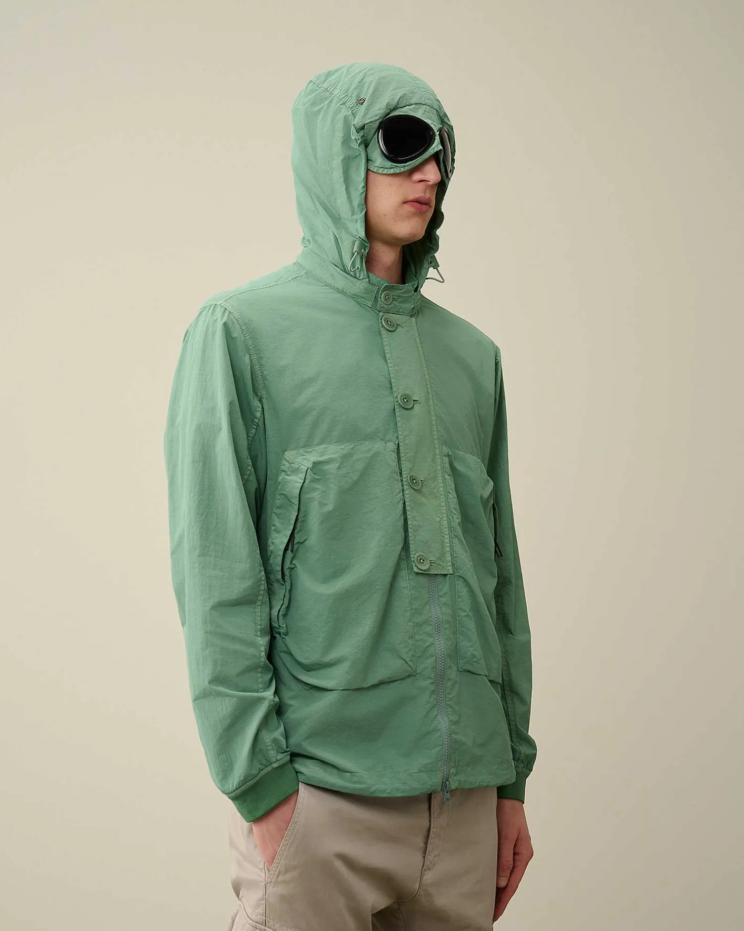 Cette Surchemise Présente Un Col Montant, Une Capuche Goggle Hood Amovible, Une Fermeture Boutonnée Sur Toute La Longueur Sous Rabat-Tempête Et Des Poches En Biais Pour Les Mains. Un Ourlet Réglable Et Des Poignets Côtelés Également Ajustables Complètent L’Ensemble. Le Flatt Nylon Est Un Nylon Émerisé, Également Dit « Sablé ». Le Tissu Ainsi Produit Est Plus Doux Et Présente Un Fini Plus Mat, Semblable À Un Tissu Qui A Été Porté Et Lavé De Nombreuses Fois. Modèle Teint En Pièce Pour Plus De Profondeur Et D’Intensité Dans Les Couleurs. Coupe Droite.