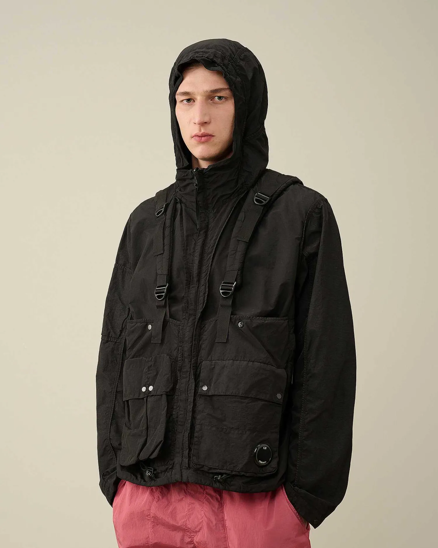 Veste Réversible Avec Col Montant, Capuche Réglable, Fermeture Zippée Sur Toute La Longueur Et Poignets Réglables. Le Détail En Forme De Verre De Lunette C.P. Company S’Invite Sur La Poche De La Manche. La Veste Présente Des Poches Sécurisées Avec Le Détail En Forme De Verre De Lunette Sur La Manche Gauche Et Des Bretelles Réglables Créant Un Effet De Superposition. Le Flatt Nylon Est Un Nylon Émerisé, Également Dit « Sablé ». Le Tissu Ainsi Produit Est Plus Doux Et Présente Un Fini Plus Mat, Semblable À Un Tissu Qui A Été Porté Et Lavé De Nombreuses Fois. Modèle Teint En Pièce Pour Plus De Profondeur Et D’Intensité Dans Les Couleurs. Coupe Droite.