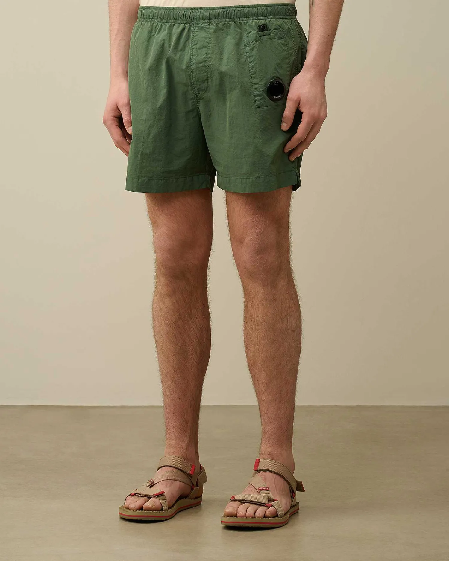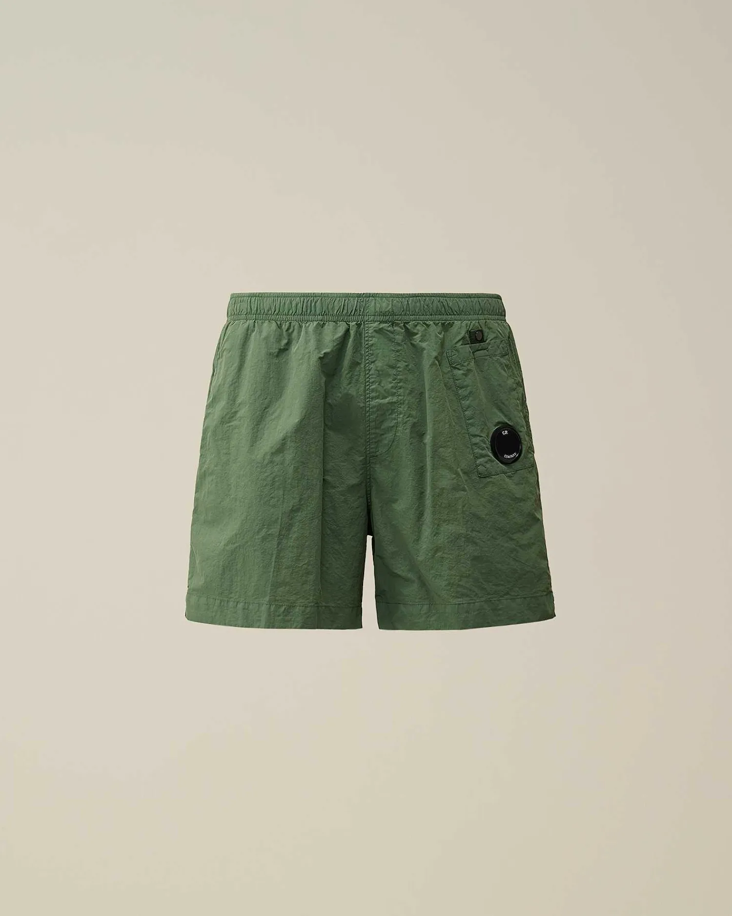 Short De Bain Longueur Genoux Avec Doublure En Mesh Et Taille Élastique À Cordons De Serrage. Des Poches Pour Les Mains, Une Unique Poche Utilitaire Et Le Détail En Forme De Verre De Lunette C.P. Company Complètent L’Ensemble. Modèle Confectionné En Flatt Nylon, Un Nylon Émerisé, Également Dit « Sablé ». Le Tissu Ainsi Produit Est Plus Doux Et Présente Un Fini Plus Mat, Semblable À Un Tissu Qui A Été Porté Et Lavé De Nombreuses Fois. Modèle Teint En Pièce Pour Plus De Profondeur Et D’Intensité Dans Les Couleurs. Coupe Droite.