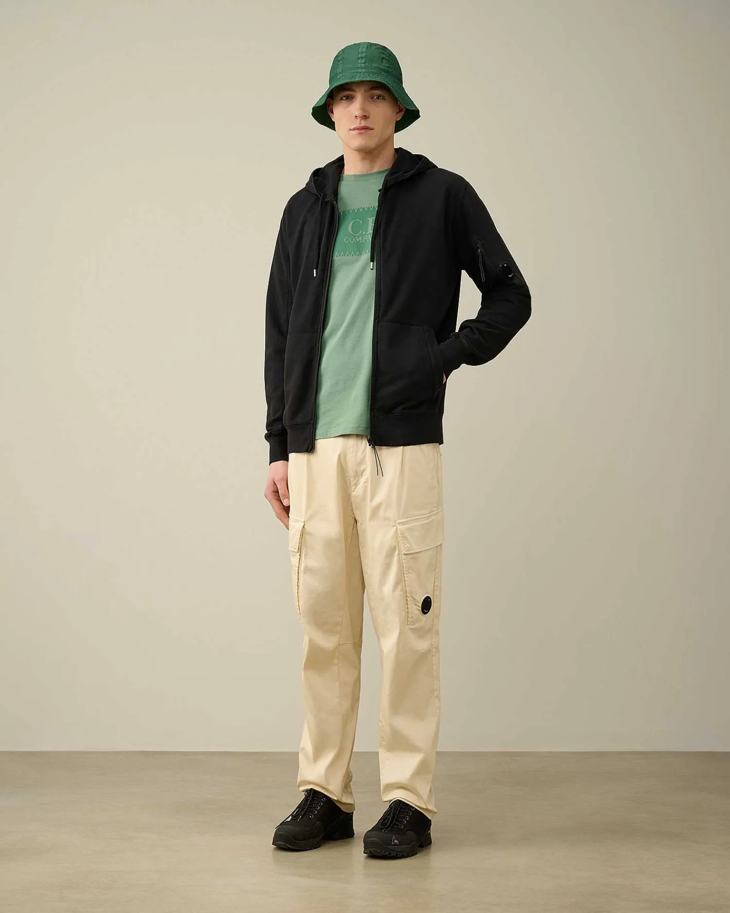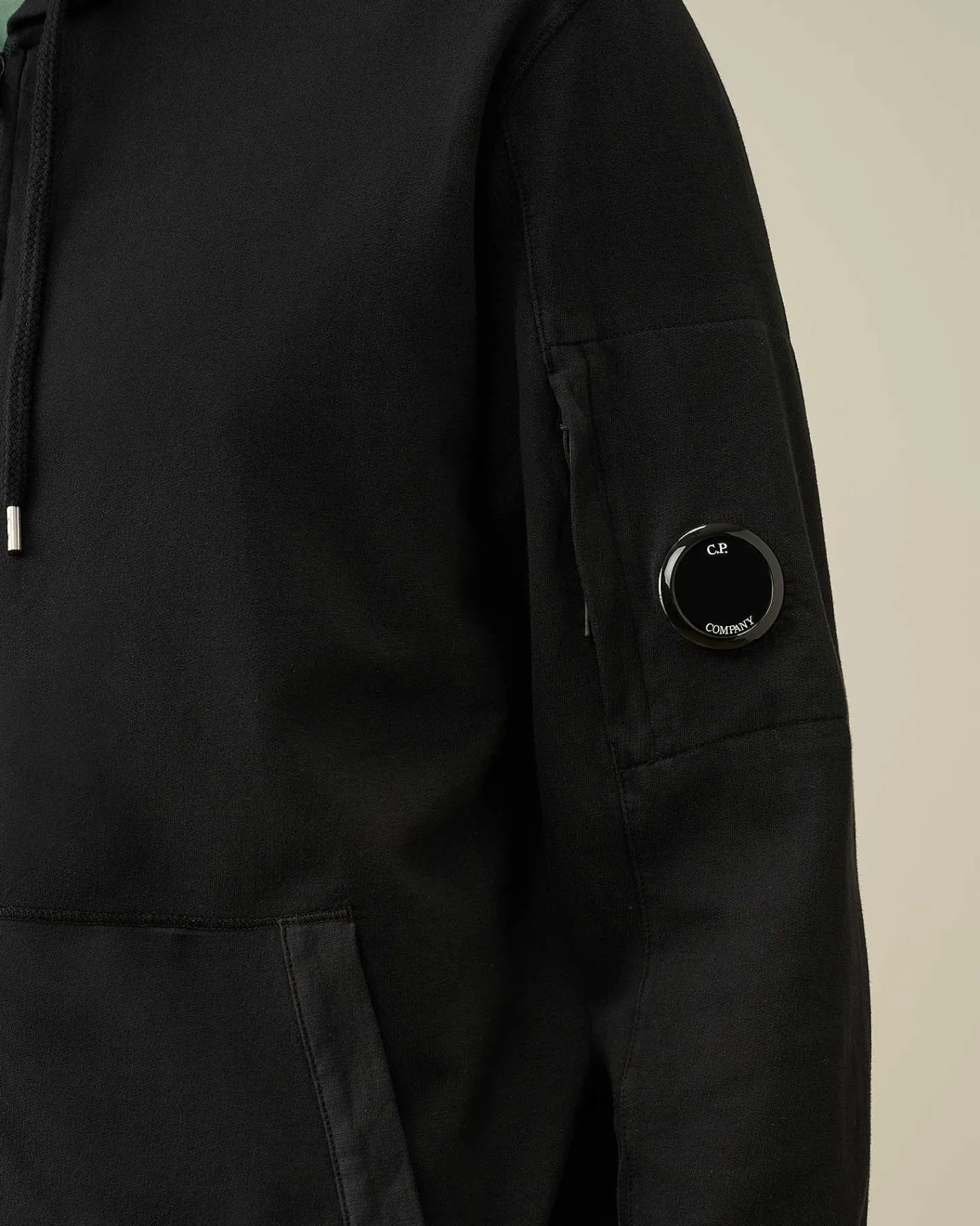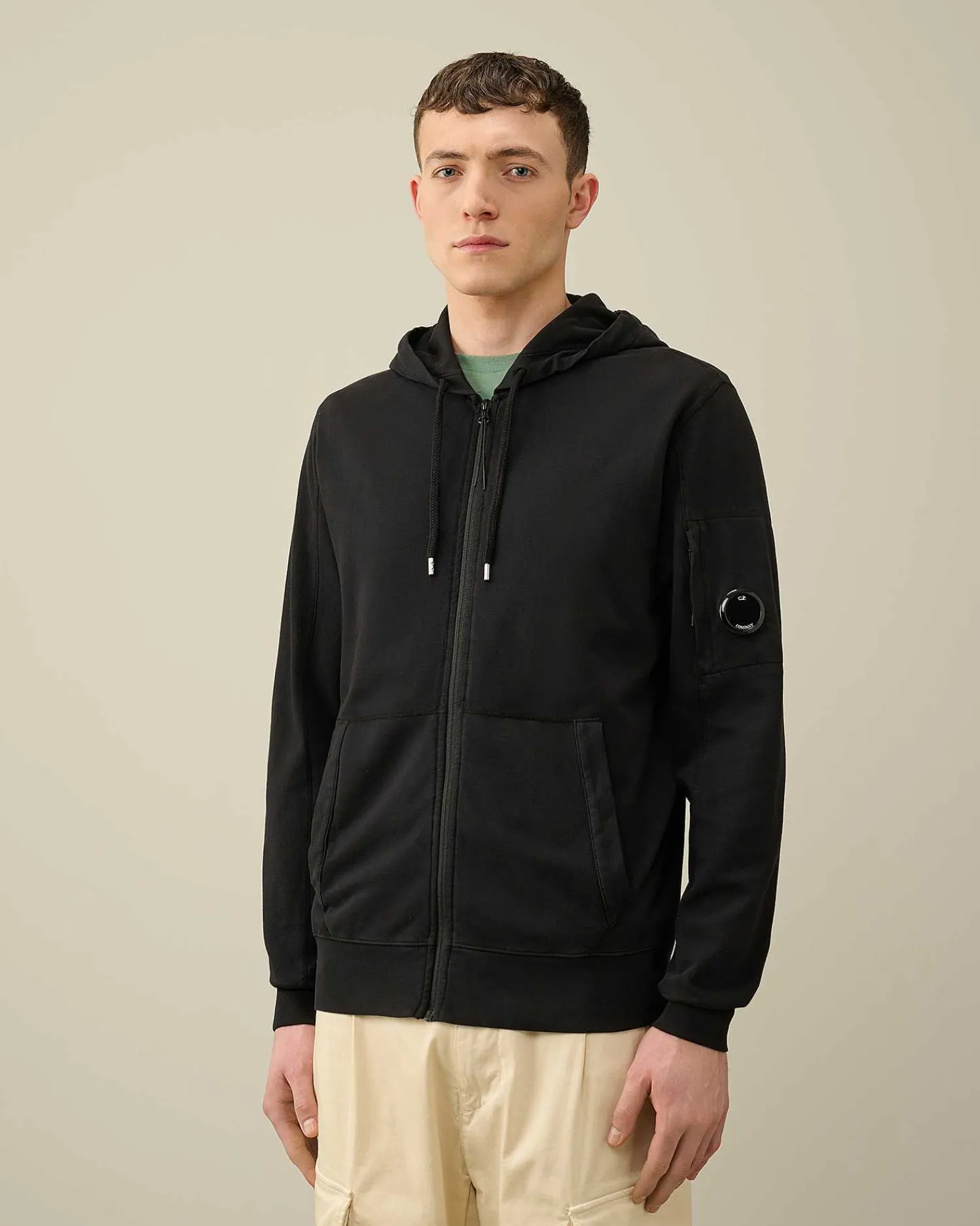 Ce Sweat-Shirt À Capuche Présente Un Col Montant, Une Fermeture Zippée Sur Toute La Longueur, Une Poche Kangourou, Ainsi Qu’Un Ourlet Et Des Poignets Côtelés. Une Capuche Réglable Et Une Poche Sur La Manche Ornée Du Détail En Forme De Verre De Lunette C.P. Company Complètent L’Ensemble. Modèle Confectionné Dans Un Coton Polaire Léger Et Teint En Pièce Pour Plus De Profondeur Et D’Intensité Dans Les Couleurs. Coupe Droite.