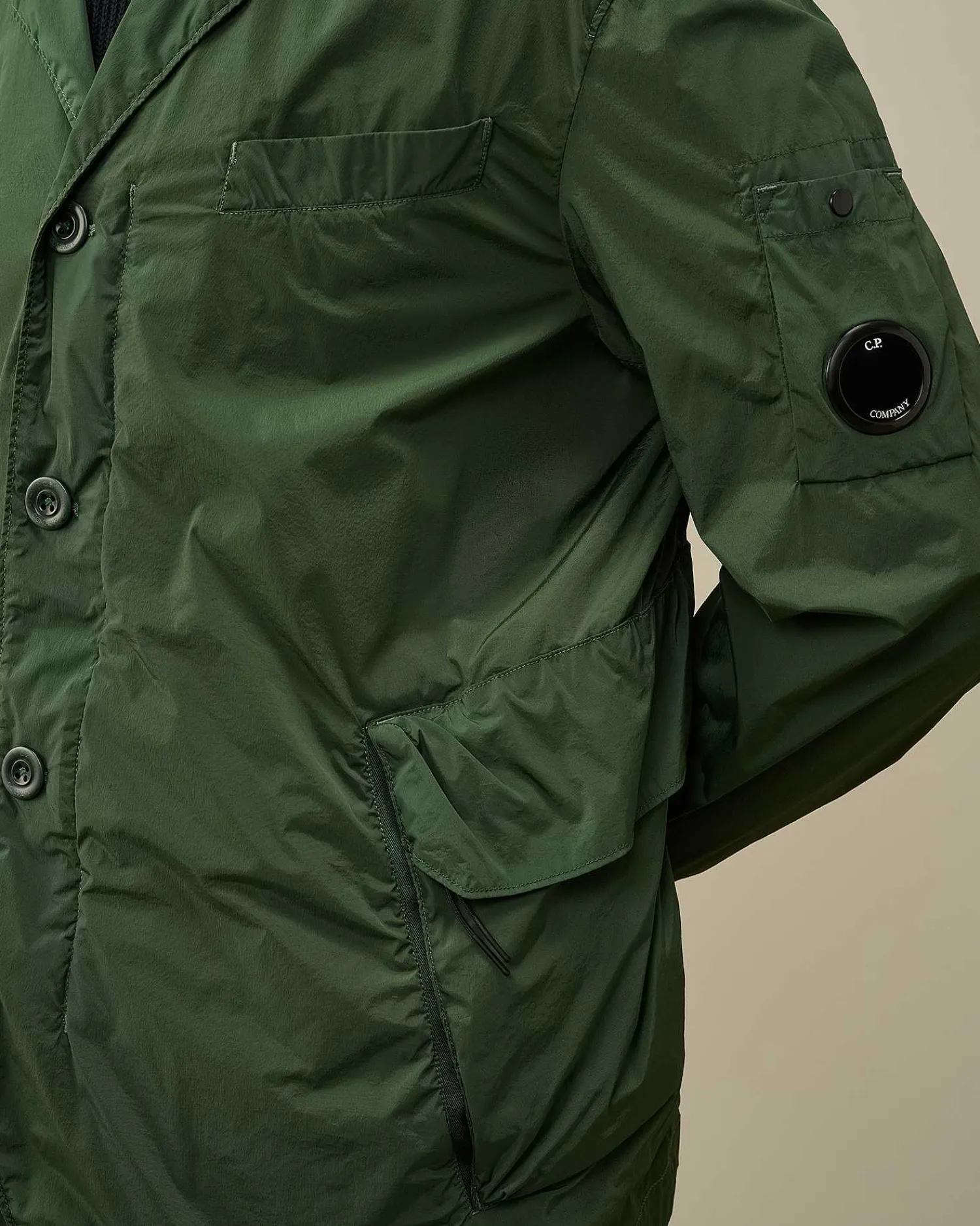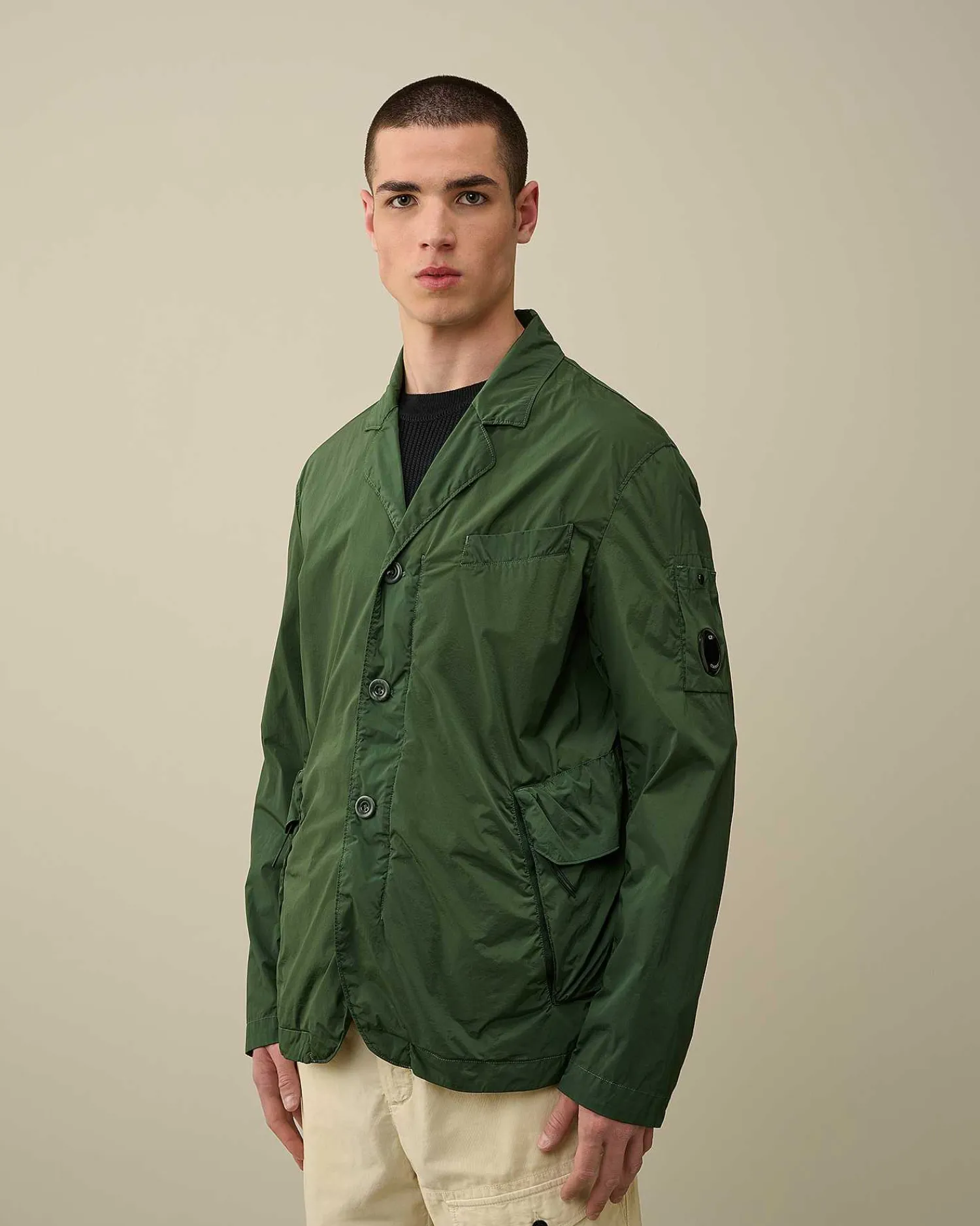 Ce Blazer Ajusté Présente Des Revers De Col Classiques, Une Fermeture Boutonnée Tout Du Long Et Une Poche Poitrine. Une Poche Sur La Manche Portant Le Détail En Forme De Verre De Lunette C.P. Company, Des Poches Latérales Zippées À Rabat Et Des Poignets Réglables Complètent L’Ensemble. Modèle Confectionné En Nycra-R, Une Matière Tissée À Partir De Nylon Régénéré Fourni Par Econyl®, Société Spécialisée Dans Le Recyclage Du Nylon. Le Blazer Est Teint En Pièce Pour Plus De Profondeur Et D’Intensité Dans Les Couleurs. Coupe Droite.