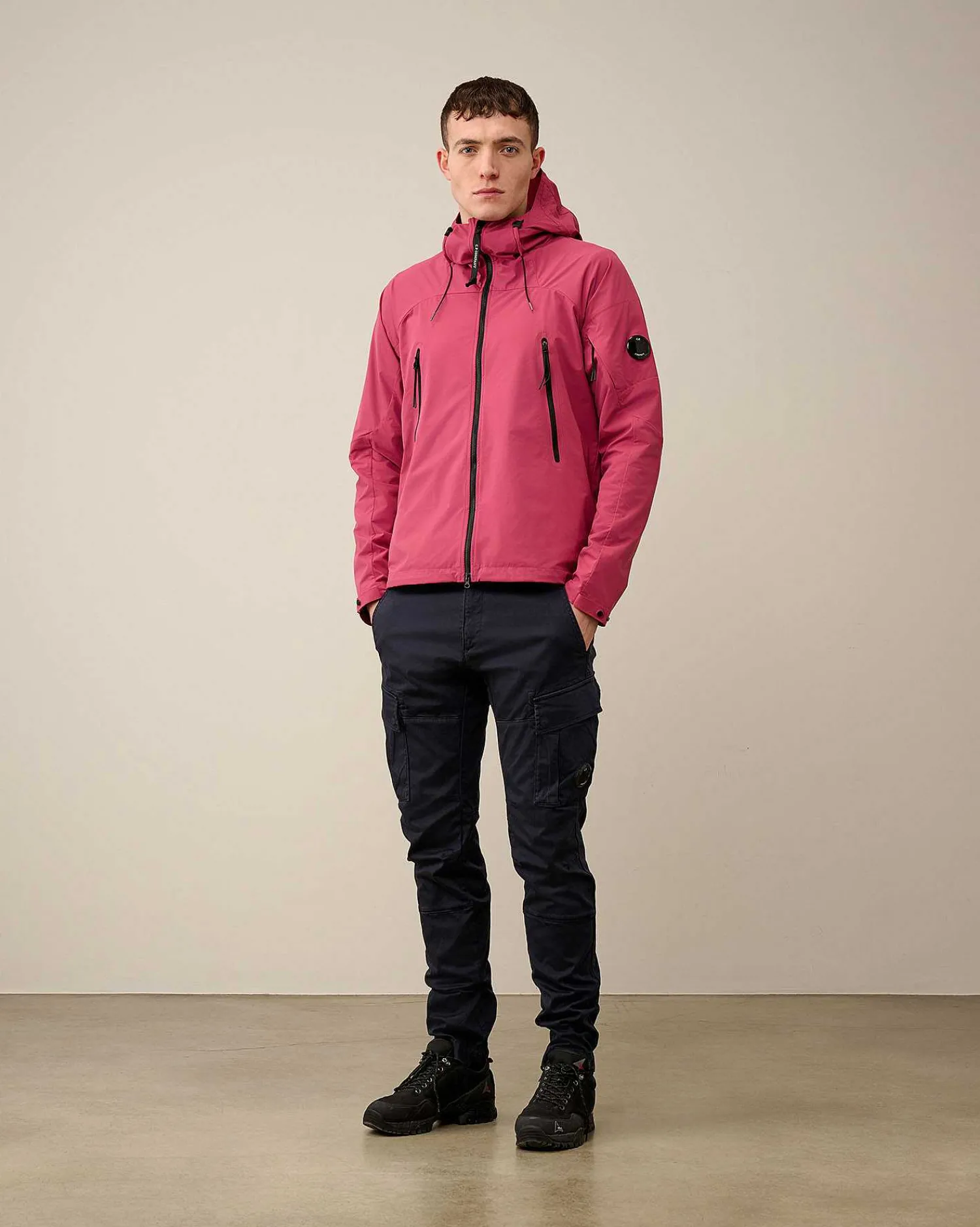 Veste Courte Avec Col Montant, Capuche Réglable, Fermeture Zippée Sur Toute La Longueur Et Détail En Forme De Verre De Lunette C.P. Company Sur La Manche Gauche. Deux Poches Avant Zippées, Ainsi Que Des Poignets Et Un Ourlet Réglables Complètent L’Ensemble. Le Pro-Tek Est Un Polyester Tissé Stretch Haute Performance Avec Revêtement Imperméable, Qui Associe L’Épaisseur Et Le Confort D’Un Sweat-Shirt Aux Fonctions Protectrices D’Un Véritable Vêtement D’Extérieur. Coupe Droite.