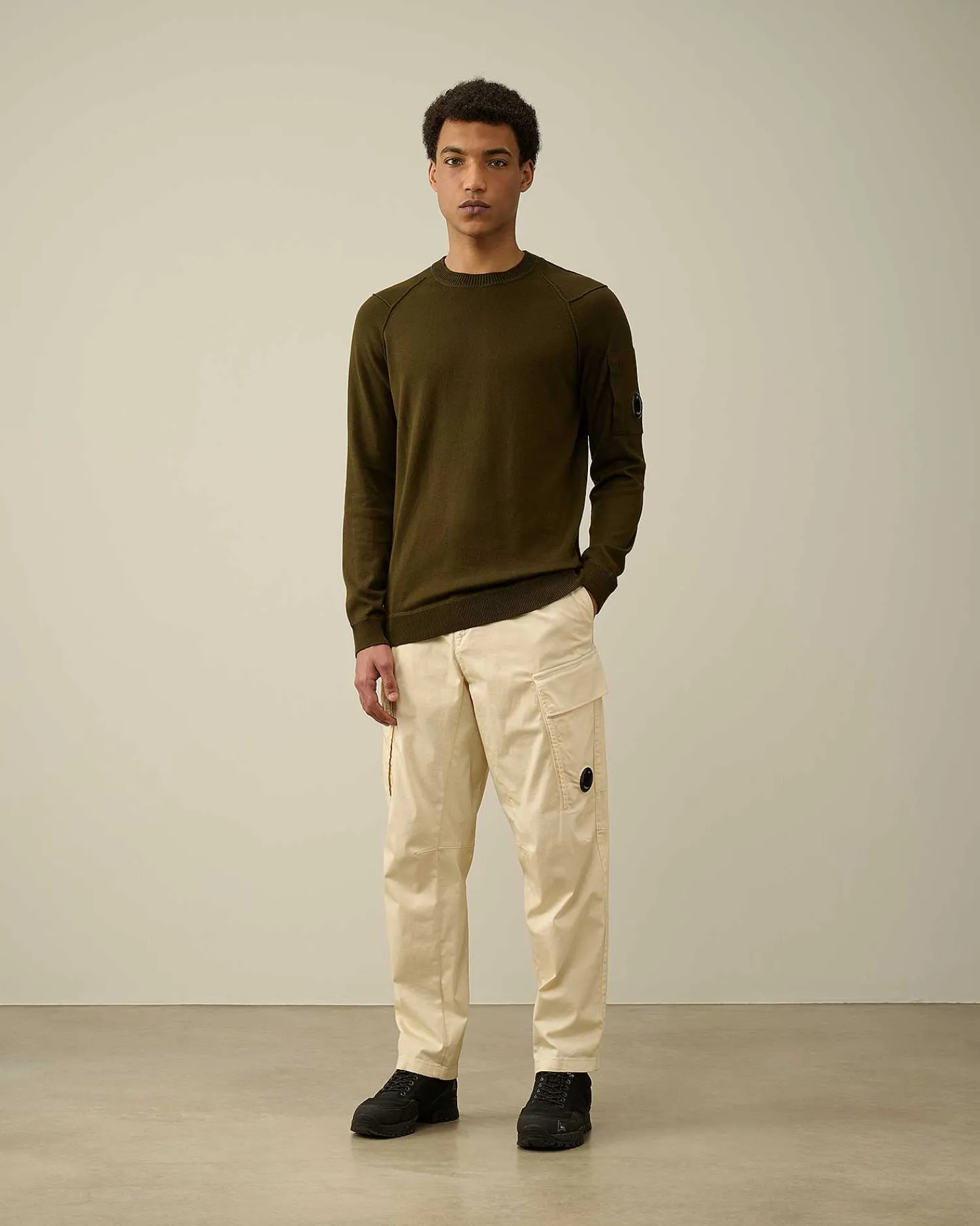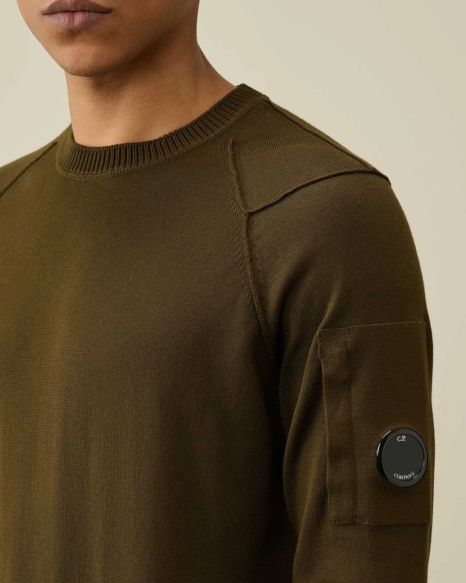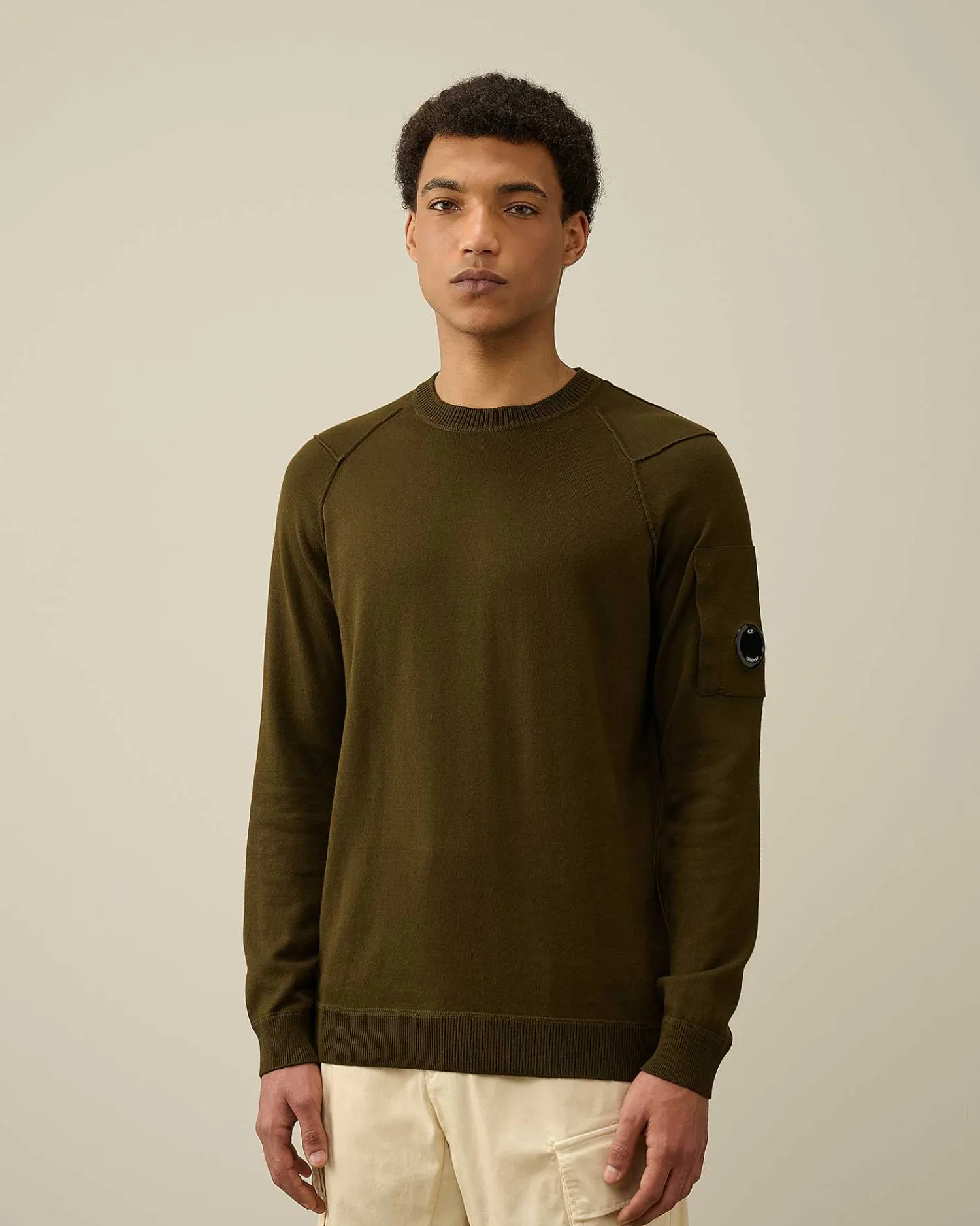 Ce Pull Présente Un Col Ras-Du-Cou, Des Poignets Et Un Ourlet Côtelés, Ainsi Qu’Une Poche Sur La Manche Ornée Du Détail En Forme De Verre De Lunette C.P. Company. Tricoté Dans Un Coton Sea Island Jauge 14, Il Offre Une Infinie Douceur Et Une Isolation Optimale. Coupe Droite.