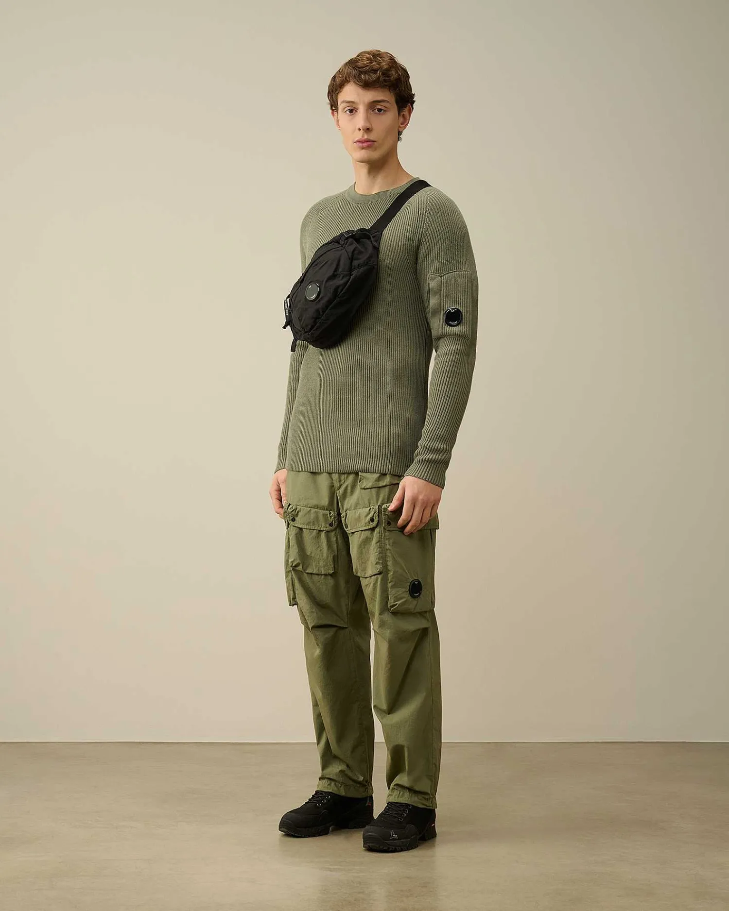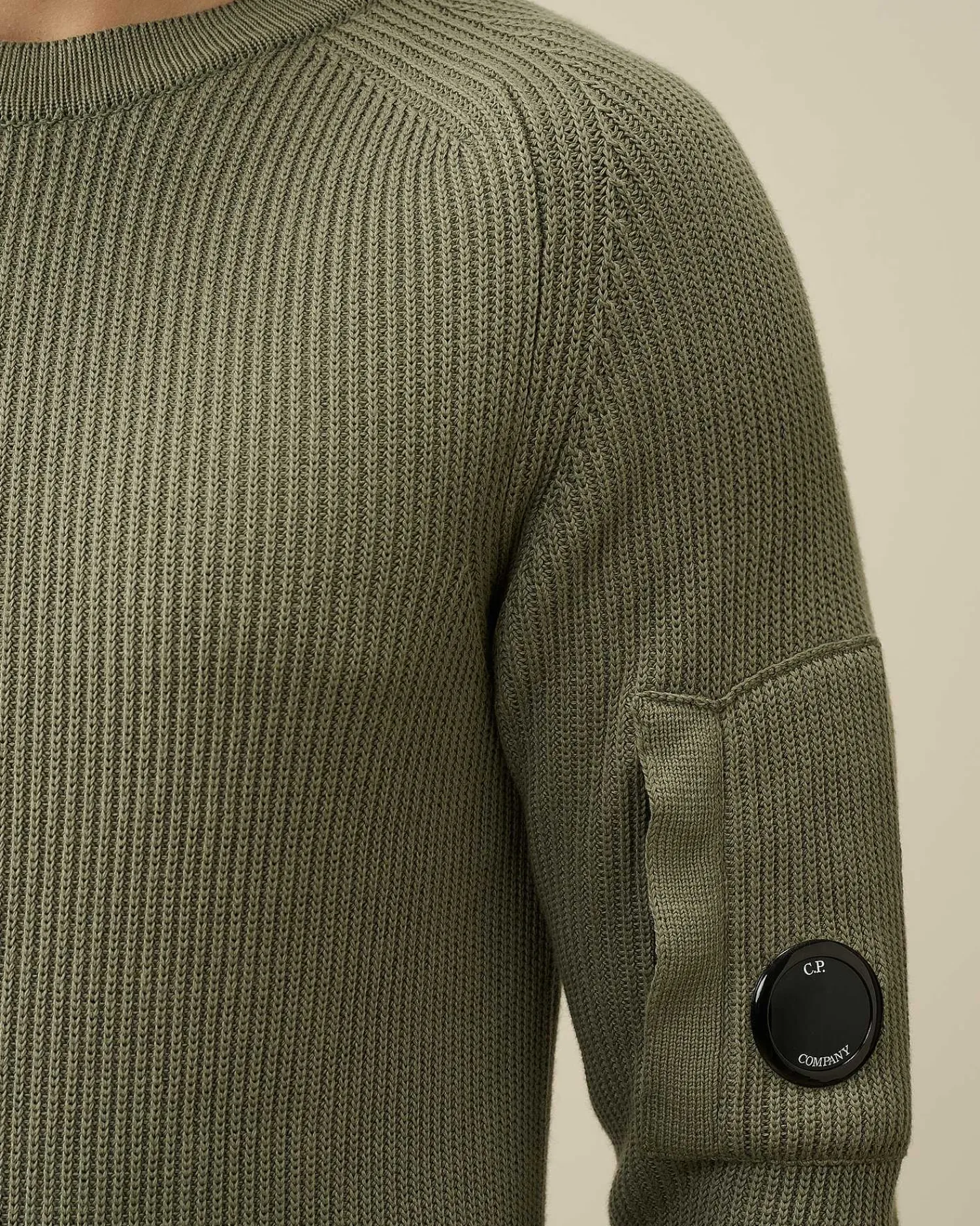 Pull À Col Ras Du Cou Avec Construction Côtelée Et Détail En Forme De Verre De Lunette C.P. Company Sur La Poche De La Manche. Tricoté Dans Un Coton Sea Island Jauge 7, Il Offre Une Infinie Douceur Et Une Isolation Optimale. Coupe Droite.